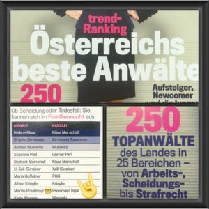 Top im 3. Jahr in Folge seit Erfüllung meines Traumes meiner eigenen Kanzlei: Ranked among Austria’s Top Lawyers. Trend #magazinAward #toplawyer #DrMartinPreslmayr #notgettingtired #preslmayrlegal